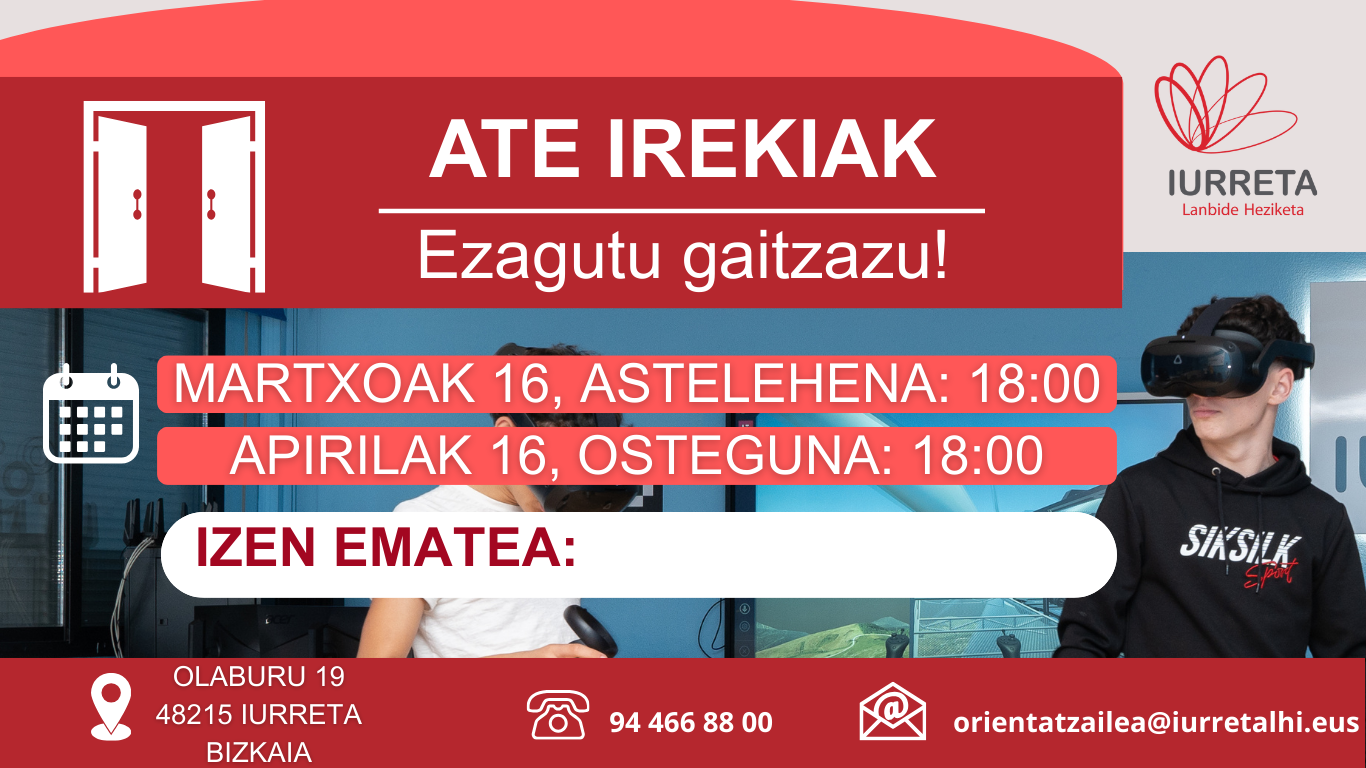 Iurreta Eleizateko Udalaren aginduz, Olaburu kaleko urbanizazio lanak direla-eta, Olaburu kalea, eta beraz, Iurreta LHIIrako autoentzako sarbidea itxita egongo da uztailaren 1eko 14:00etatik, abenduaren 31ra. Ordezko aparkalekuak: Iurretako hilerrian. Larrakozelai futbol zelaian. Eliza ostean. Kultur…